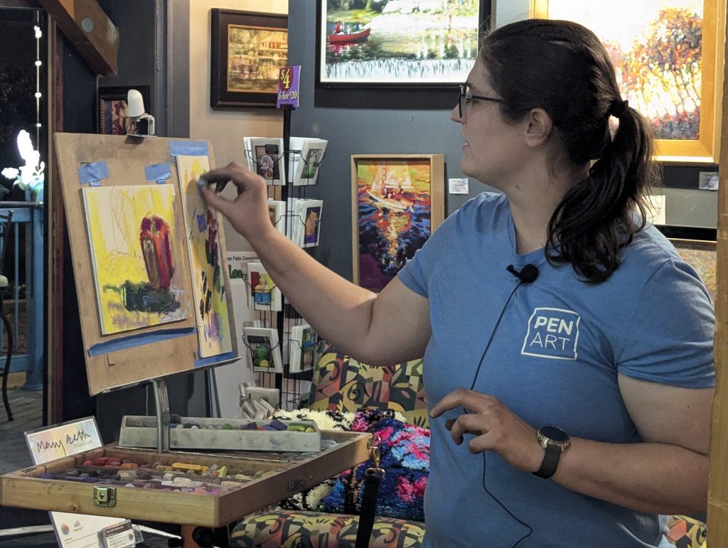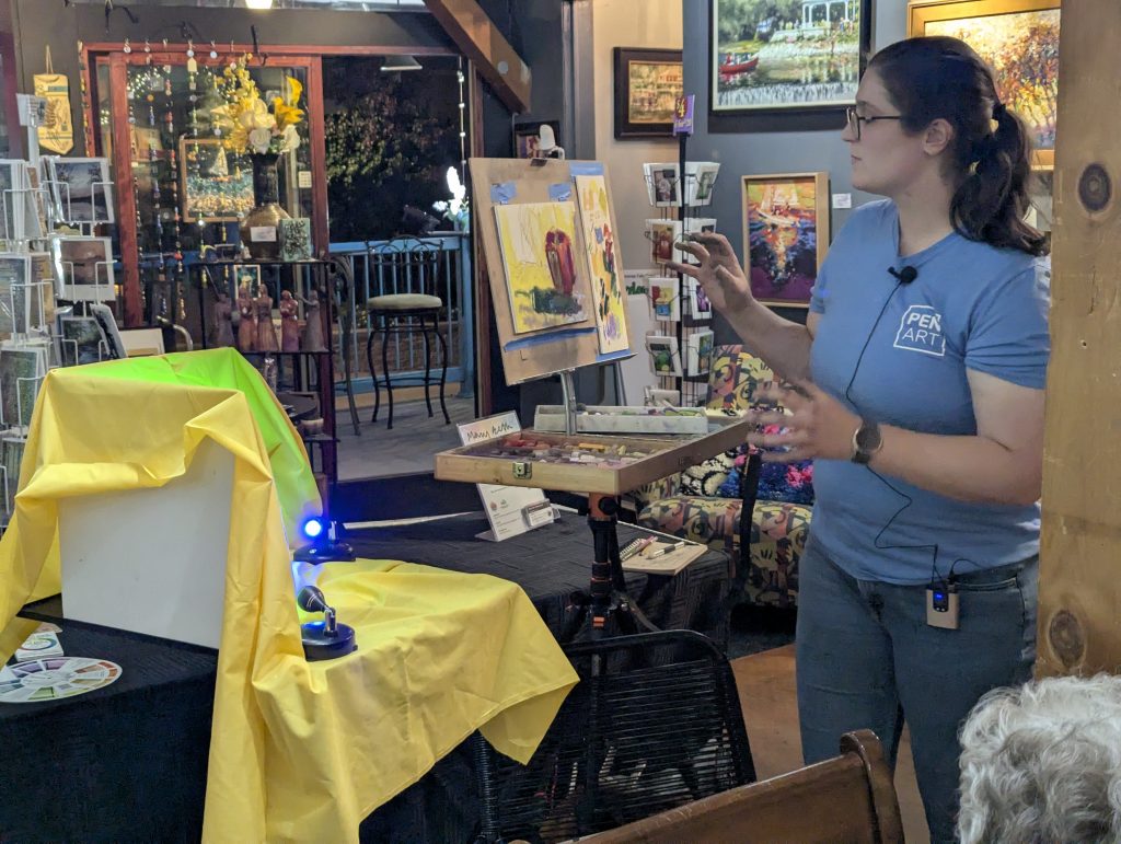 Recent BEST OF SHOW winner at this year’s Falls Festival of the Arts’ Plein Air competition shared her talent at our Sept. 23, 2025 meeting.