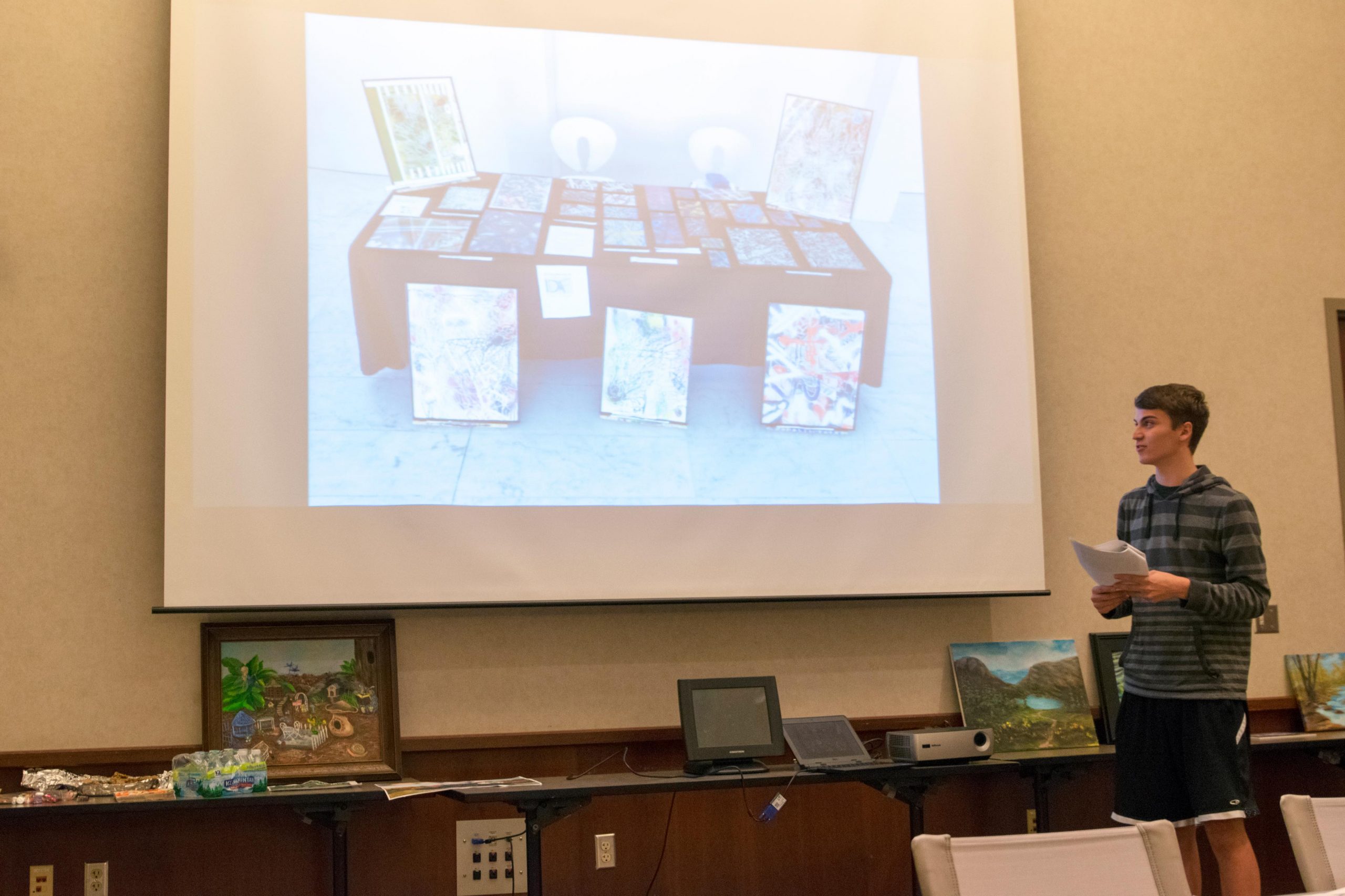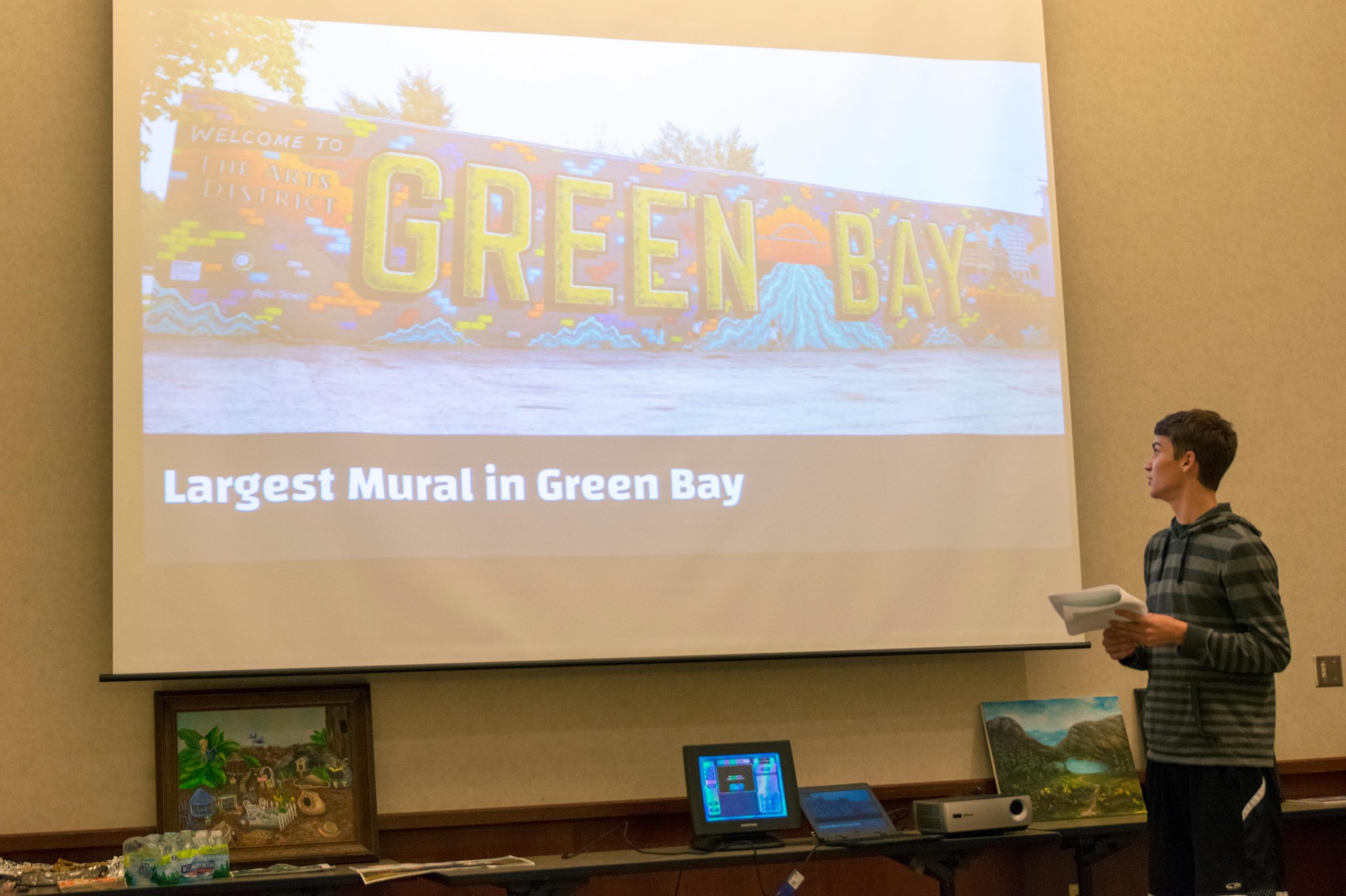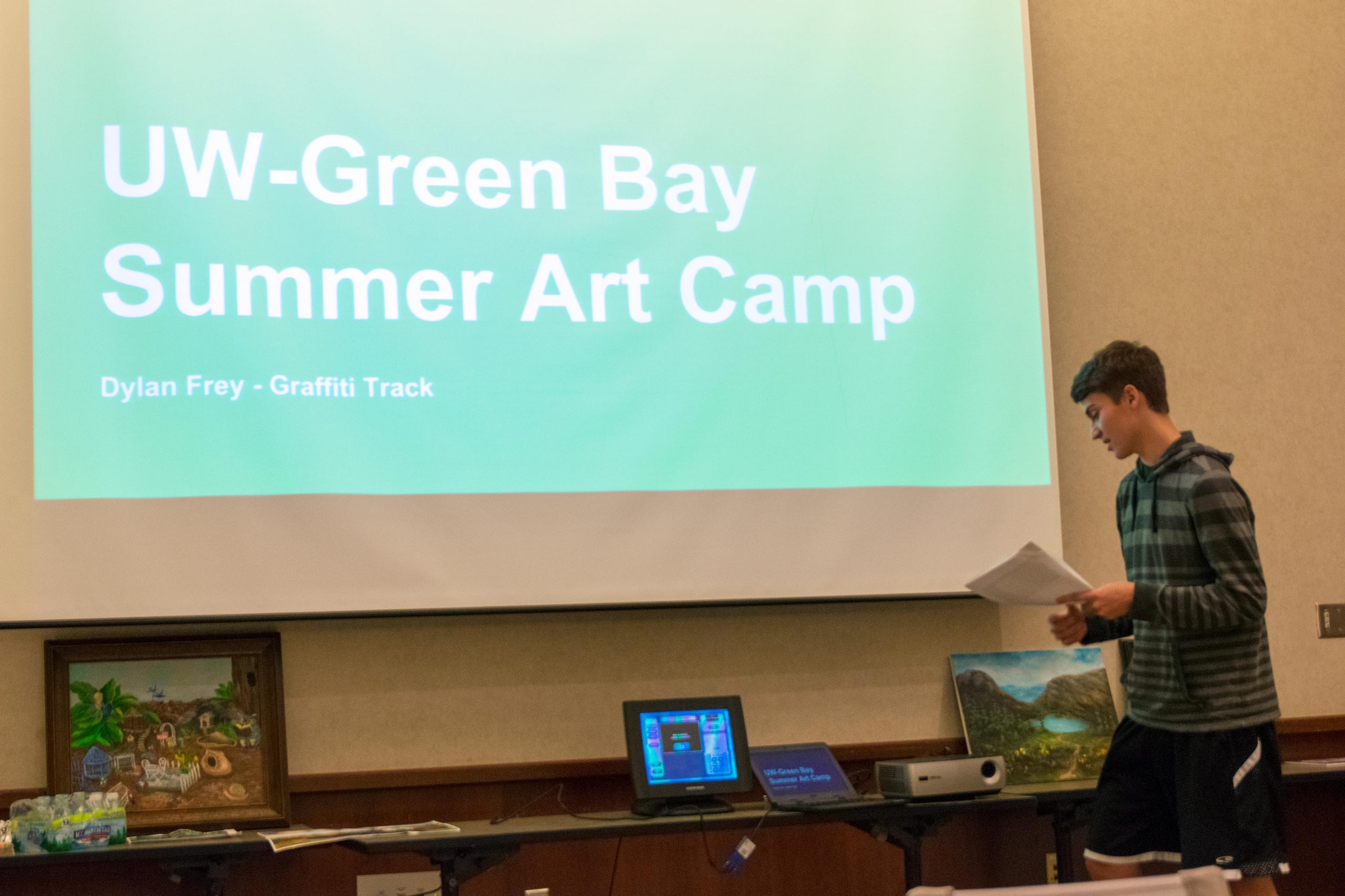 Our 2018 Camp Scholarship Winner, Dylan Frey, visited us at our September 2018 membership meeting and gave a terrific presentation on his week at UW-Green Bay’s summer art camp. Dylan chose to develop his Graffiti style during his time there and studied with Green Bay graffiti artist Beau Thomas, best know for his large mural in Green Bay. Just like previous scholarship winners, Dylan said he would highly recommend the experience!